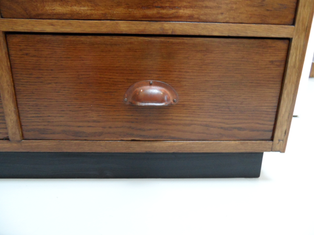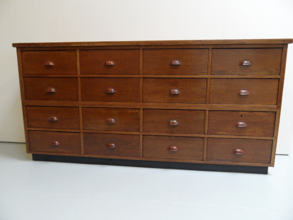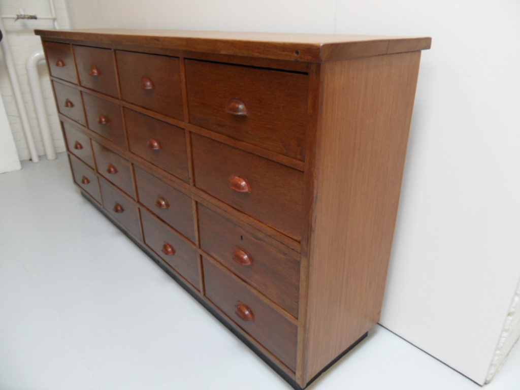 Vintage eiken winkelkast met 16 lades. Gemaakt eind jaren 30. In zeer goede staat. Nederlands.