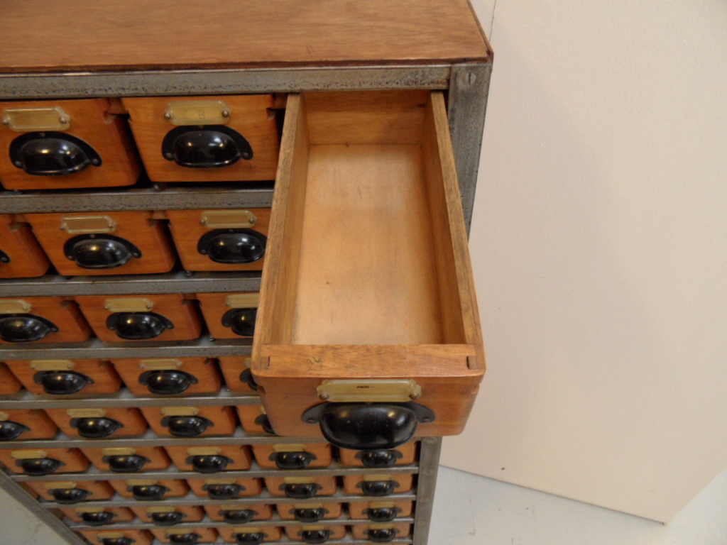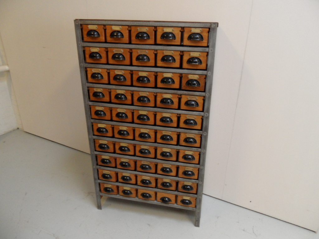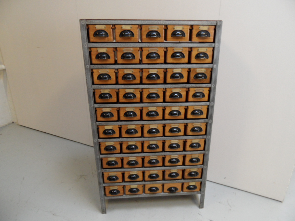 Vintage archiefkast met 45 goed lopende lades. Gemaakt in de jaren 50. In zeer goede staat. Nederlands.