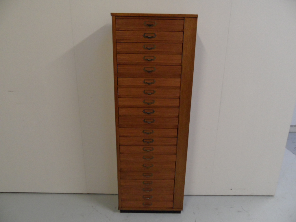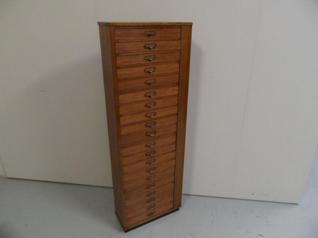 Vintage fourniturenkast met 20 lades. In zeer goede staat. Van het merk Amann.