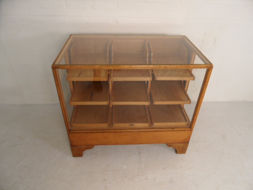 Antieke eikenhouten toonbank gemaakt en gesigneerd in Nederland in de jaren 30. In zeer goede staat.