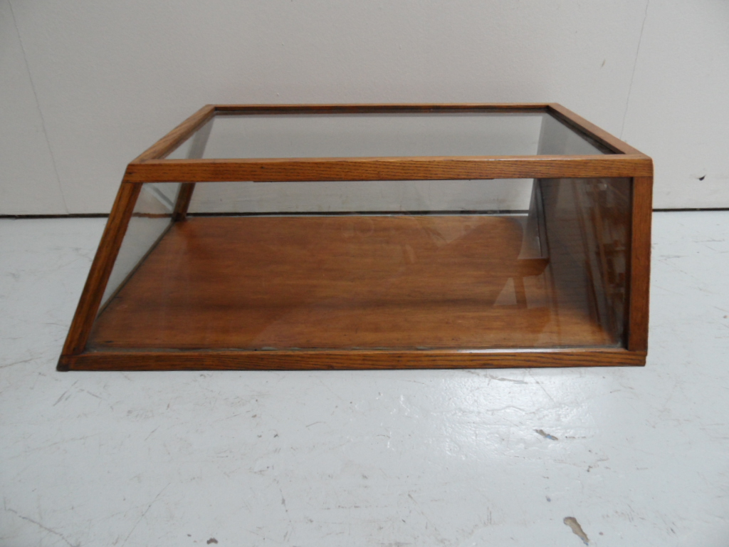 Antiek eikenhouten winkelvitrine. In zeer goede staat. Gemaakt in Nederland in de jaren 20.