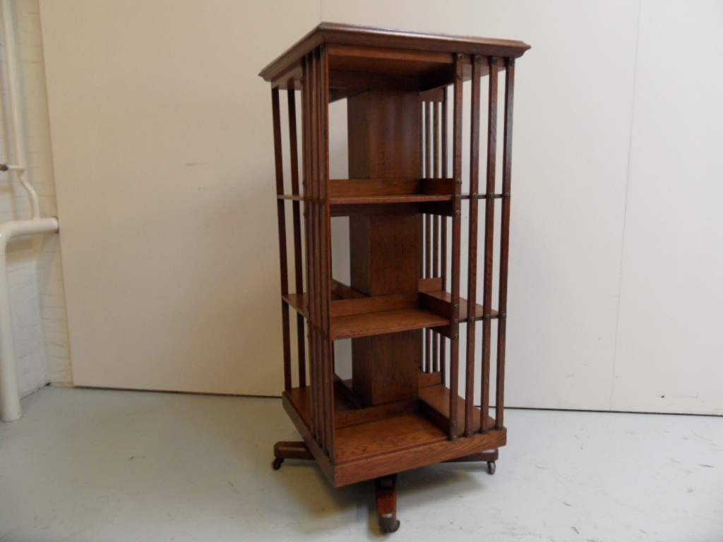 Antiek eiken boekenmolen in zeer goede staat. Goed stevig en soepel draaiend. Gemaakt rond 1900.
