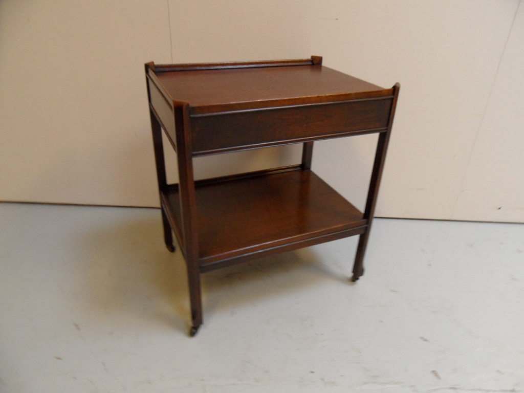 Vintage eikenhouten trolley op wieltjes. In zeer goede staat. Gemaakt rond 1920-1930. Met lade.