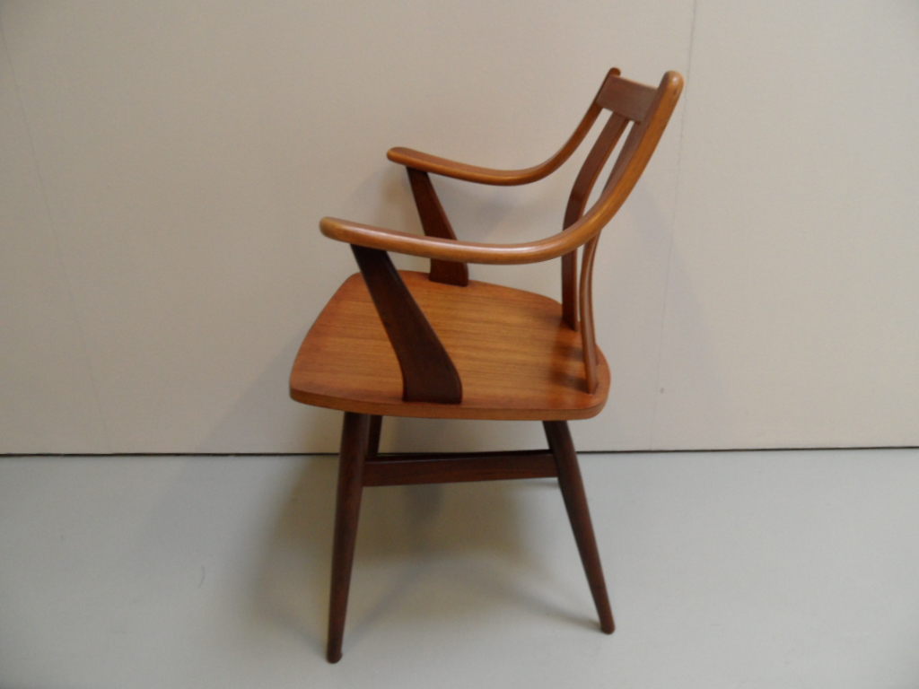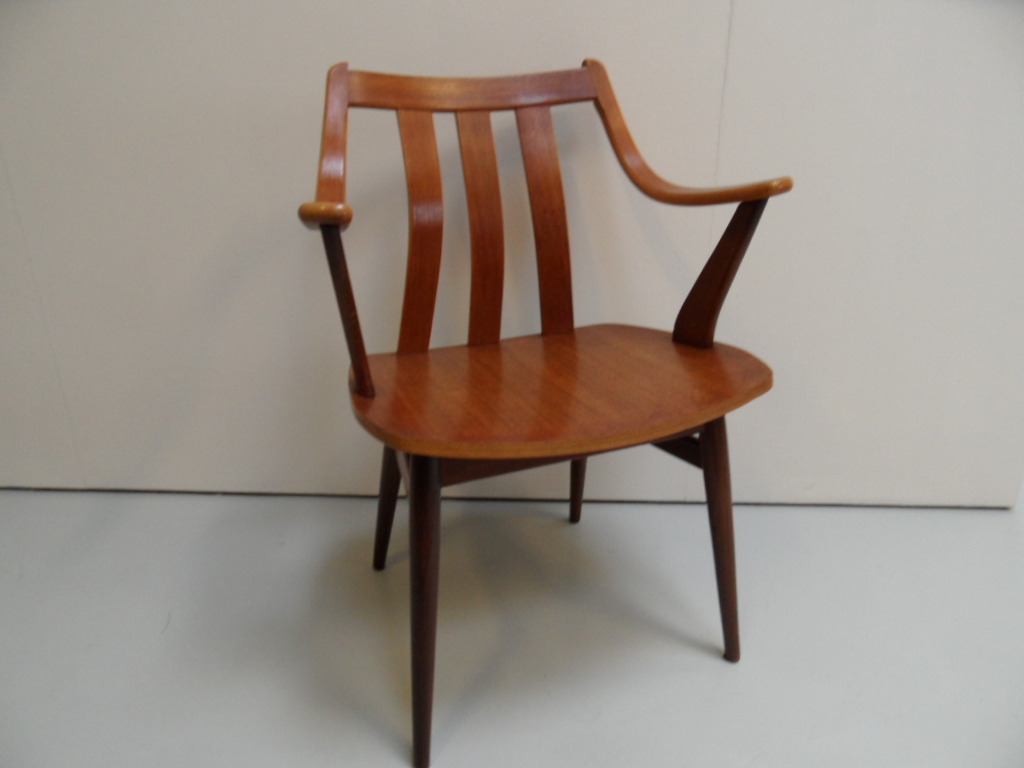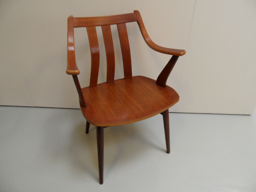 mid Century vintage armstoel/bureaustoel. gemaakt van teak hout. In zeer goede en stevige staat. Klaar voor gebruik!