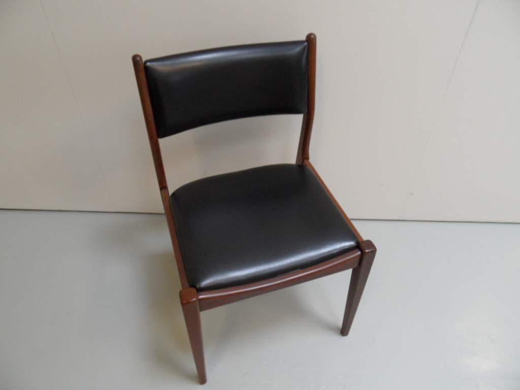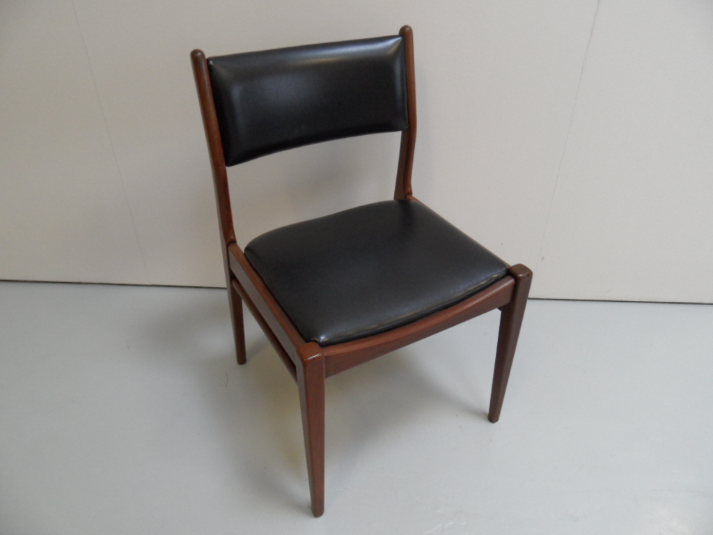 Mid Century set van 4 eetkamer stoelen uit de jaren 50. In zeer goede staat. Met mooie skai bekleding.