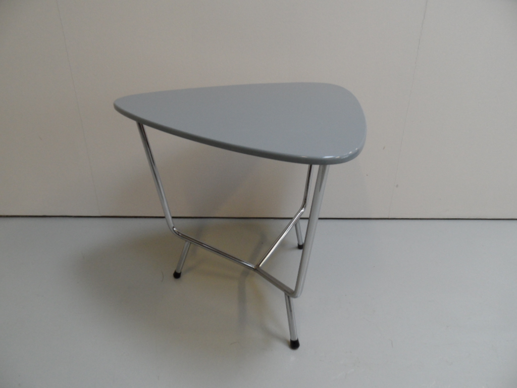 Vintage bijzet tafel blauw met chrome onderstel. Gemaakt in de jaren 50. In mooie vintage staat.