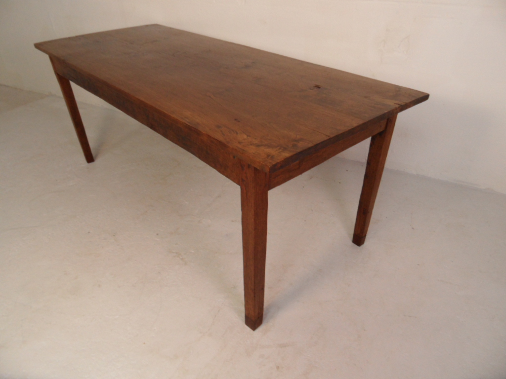 Antieke eikenhouten Franse eettafel. Gemaakt rond 1880-1900. Mooi doorleefd en prachtige oude kleur en patina.