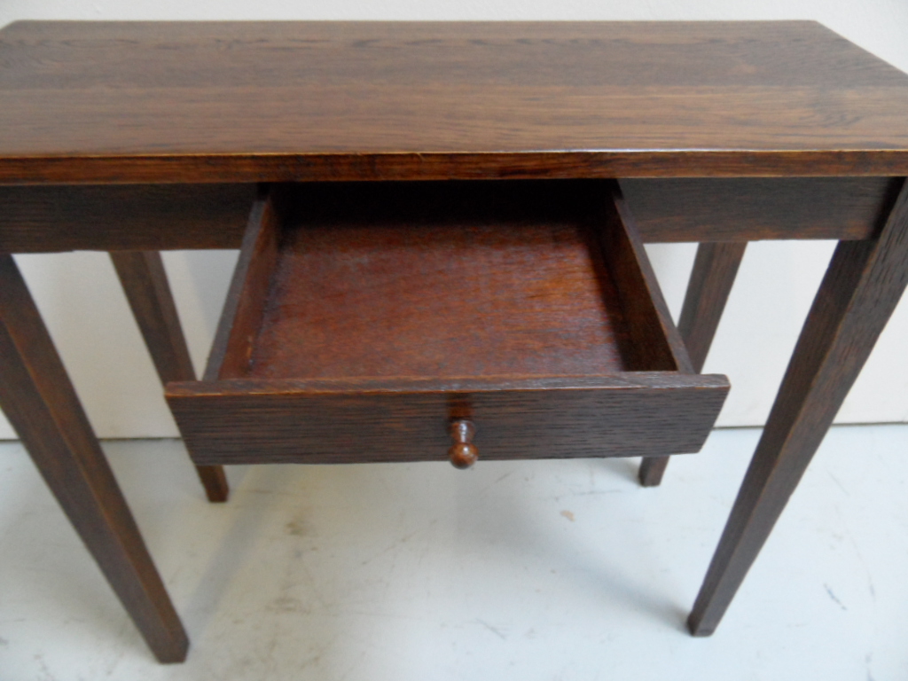 Antiek eikenhouten kleine sidetable met lade. Ook te gebruiken als bijzettafel. Gemaakt in de jaren 20. In zeer goede staat.